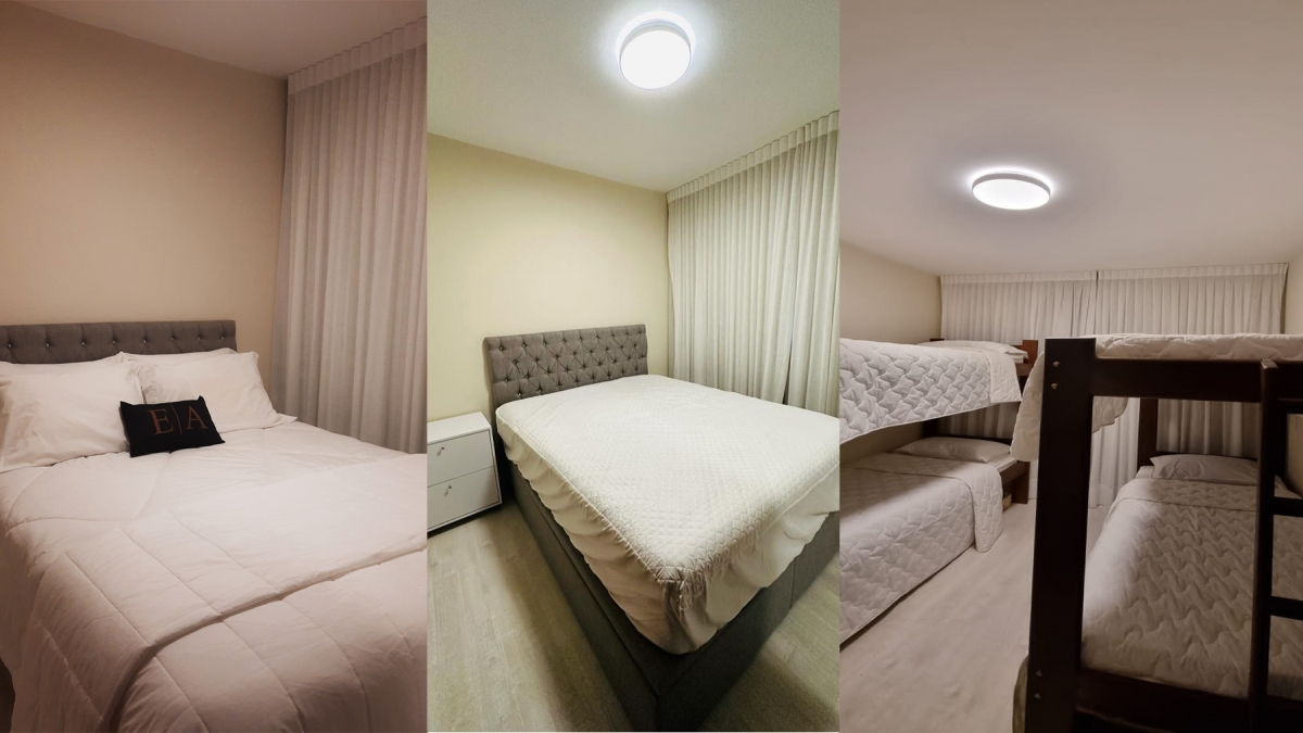 - 3 Quartos, sendo uma suite 2 camas de casal + 2 beliches com camas auxiliar