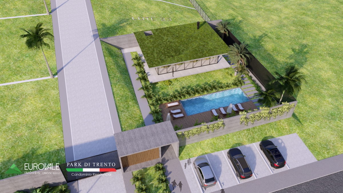 O Park di Trento possui portão de entrada e outro de saída, além de muro frontal com portaria e gradil nas laterais e fundos.